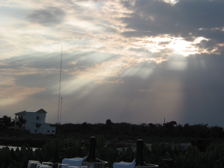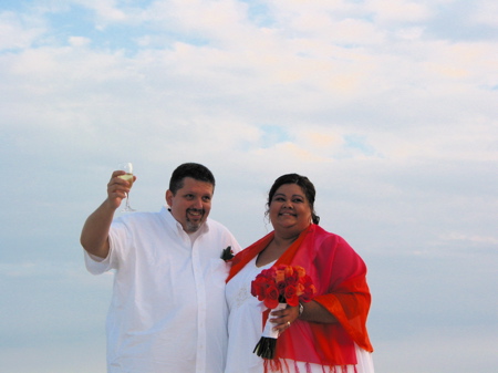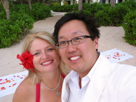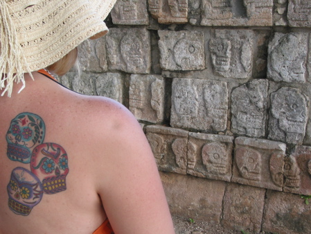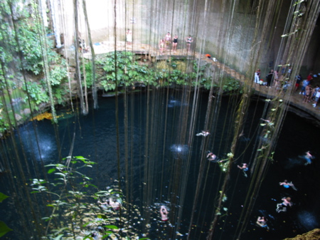 | Last week we went to Cancun for a wedding, for my friends Scott and Amy (whom we'll call AmyB to avoid confusion with my wife Amy). Pictures and more after the jump. Cancun is a pretty spectacular place, a booming tropical resort destination that's only a few hours' flying time away. Yes, it's touristy, and yes, it's somewhere you'd want to avoid during spring break, but it's also lush and beautiful, and the people are exceedingly friendly. We stayed at an all-inclusive adults-only resort called the El Dorado Royale. All-inclusive includes food and drink, including alcoholic beverages. When Amy found out about this, she pronounced, "When we get there, they will RUE THE DAY they decided to include booze in this package." Also included? Jacuzzi tubs in every room. After several rounds of free booze, this was the second thing we took advantage of. ![]() I somehow didn't get many pictures of the resort itself. Amy has some video of the place, but I wish I'd snapped more photos. In particular, there was a warning sign that told beach swimmers to stay off the giant sandbags that the hotel set up as sort of an artificial reef. But the sign looked more like it was saying "Do Not Hump the Sandbags", and I really wanted that photo to put up in my office at work. Scott and AmyB had a beach wedding, which was beautiful. ![]() The gods looked favorably upon this wedding. ![]() (Oh, and speaking of the sky and good omens, how can you go wrong with a wedding when the year's most spectacular astronomical event happens that same weekend? Below is the crescent moon, Venus, and Jupiter in conjunction.) ![]() Here are Amy and I at the wedding. ![]() Beyond hanging out at the resort's many pools (with swim-up bars, natch), we all went to the Mayan ruins at Chichen Itza for a day. ![]() ![]() Our tour guide was knowledgeable and friendly. When Hollywood makes a movie about our trip, the guide will be played by Jack Black: ![]() My favorite thing at Chichen Itza was this relief in the Great Ball Court, depicting the beheading of the contestant who lost one of the games. The snakes shooting out of his head represent the blood spurting out of his newly-decapitated body. ![]() Amy's favorite thing was the wall of skulls that matched her Día de los Muertos tattoos: ![]() After Chichen Itza, we visited Cenote Ik Kil. A cenote is a sinkhole or underground cave. There are hundreds of these around Cancun, and they're essentially giant holes in the ground with water from underground rivers. Cenote Ik Kill is 196 feet wide and 130 feet deep, and it was amazing. ![]() We've got some video of me and Amy jumping into the water there, which I'll try to put up in a future post. Also in a future post: video of me and Amy on a zip line tour in nearby Selvatica. |