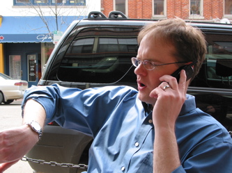 ... in which I describe my nostalgia-tripping Monday morning. Monday, 9:30 a.m. I'm meeting Amy for a couple hours of chatting. God, she still looks great. She looks just the same she did in high school, except that the baby-fat she used to carry in her cheeks has now turned into a brand new little person. ![]() Actually, I wanted to reproduce the picture of her that I used to make my pencil-sketch back in high school, just to demonstrate the sameness. But I didn't get the chance. We talk for a while, mostly chit-chat. What I realize during this is that Amy and I don't have the same level of shared experiences that I have with some of my other high school friends, a fact that I regret terribly. I felt so close to her during high school and the year following; why didn't we spend more time together? How come we don't have a stable of shared memories? Regret is a terrible thing. Still, we have a nice time reminiscing. She pulls out her own photo albums and we browse through them, and we find that we do remember a lot of stuff, like parties and old acquaintances and such. It feels good to reconnect with her. It's like finding an old box in your attic and unearthing your favorite concert t-shirt that you thought you'd lost. Now I wish I had a t-shirt from when we all went to see the Monkees at Pine Knob back in 1986. Darn. Monday, 11:30 a.m. Amy has to run off to do mommy things, so I go to meet John for lunch downtown. While I'm waiting for him, I wander around a bit, and pass by the public library where I used to spend so much time. It was right by the downtown bus terminal so I could go there by myself as a kid. The efficient Ann Arbor bus system is Thing I Love #8. ![]() John and I meet at the Grizzly Peak, which wasn't there when I lived in Ann Arbor, as far as I remember. It's a cool little pub. I think it's appropriate ending the weekend with John, because he instigated this whole thing to begin with. In high school, John and I never seemed to do much together, but now I feel like he's the guy I understand the most, the one whose sensibility most closely matches mine. John's in the midst of an exciting job transition; here's a picture of him seeming all businesslike and important: ![]() We each have fish and chips, and beer, and that's that: the end of the Ann Arbor weekend. I am happy and sad all at once, because the weekend has been so fantastic but now it's over. To think, when I first got to Ann Arbor, I was just happy because I got to poop in a private toilet. |