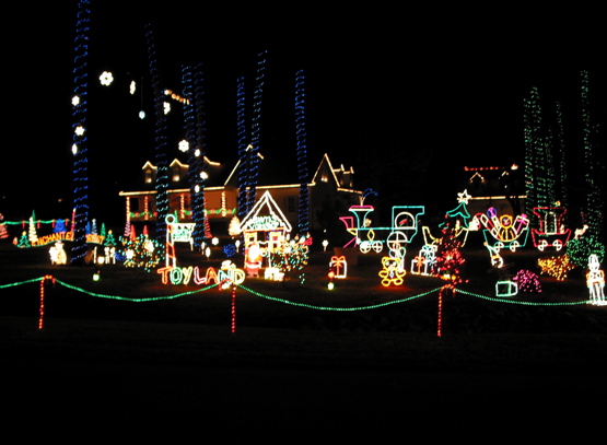 | The top three loudest Christmas displays I've found so far this year. #3: I call this one "Invasion of the Alien Ornaments". One or two new invaders appear each year. ![]() #2: I call this "Meet the Griswolds". ![]() #1: I call this "Jesus in Toyland". This picture doesn't do justice to the acre of ornaments and lights on this property: ![]() Here's a bonus picture from Jesus in Toyland: ![]() |